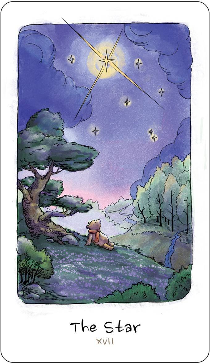 The Hundred - Acre Arcana Tarot, brought to life by artist Lisa Kubja, captures the whimsical charm of Pooh and his companions through delicate brushstrokes and a warm, inviting palette. Her painterly style evokes a sense of gentle wisdom and heartwarming familiarity, making this deck a treasure for both tarot enthusiasts and lifelong Pooh lovers.