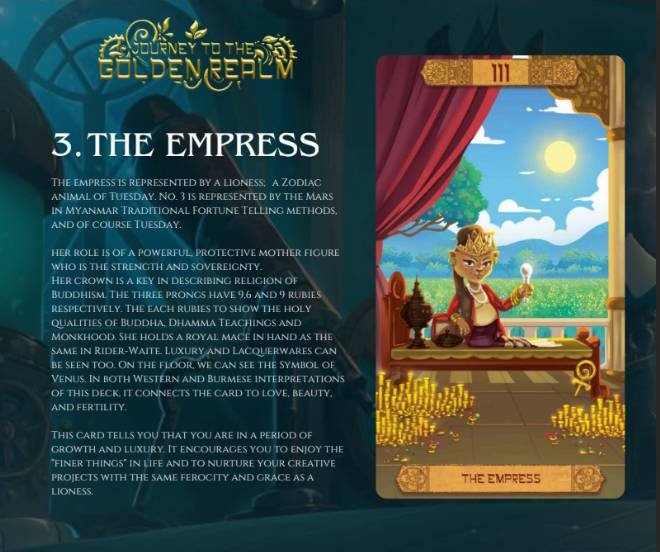 It's a Rider–Waite–based Tarot deck reimagined through the mystical traditions of Myanmar, offering a truly distinctive and cultural interpretation.